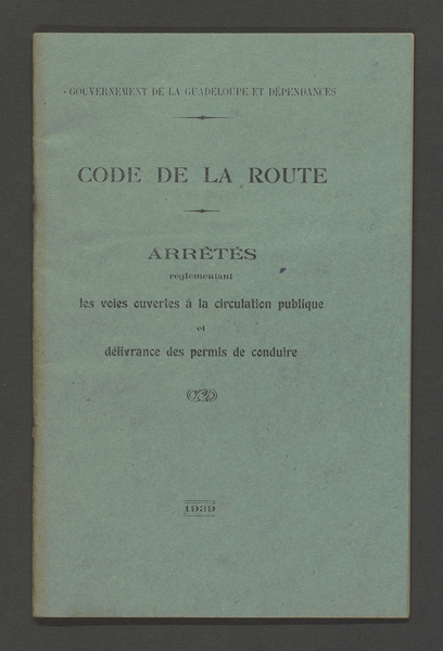 Code de la route en vigueur à la Guadeloupe, édition de 1939. Arch. dép. Guadeloupe, INC 1/6.