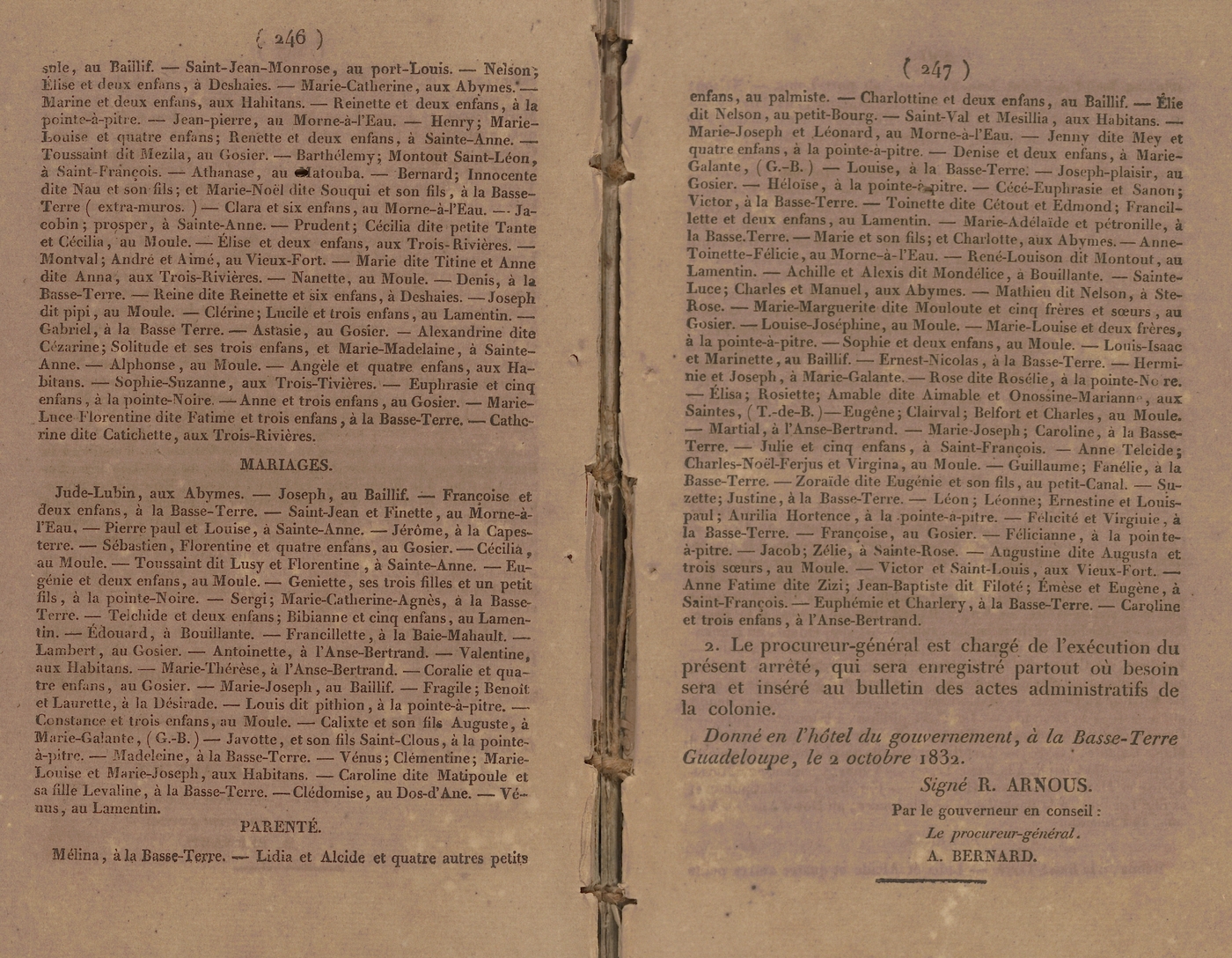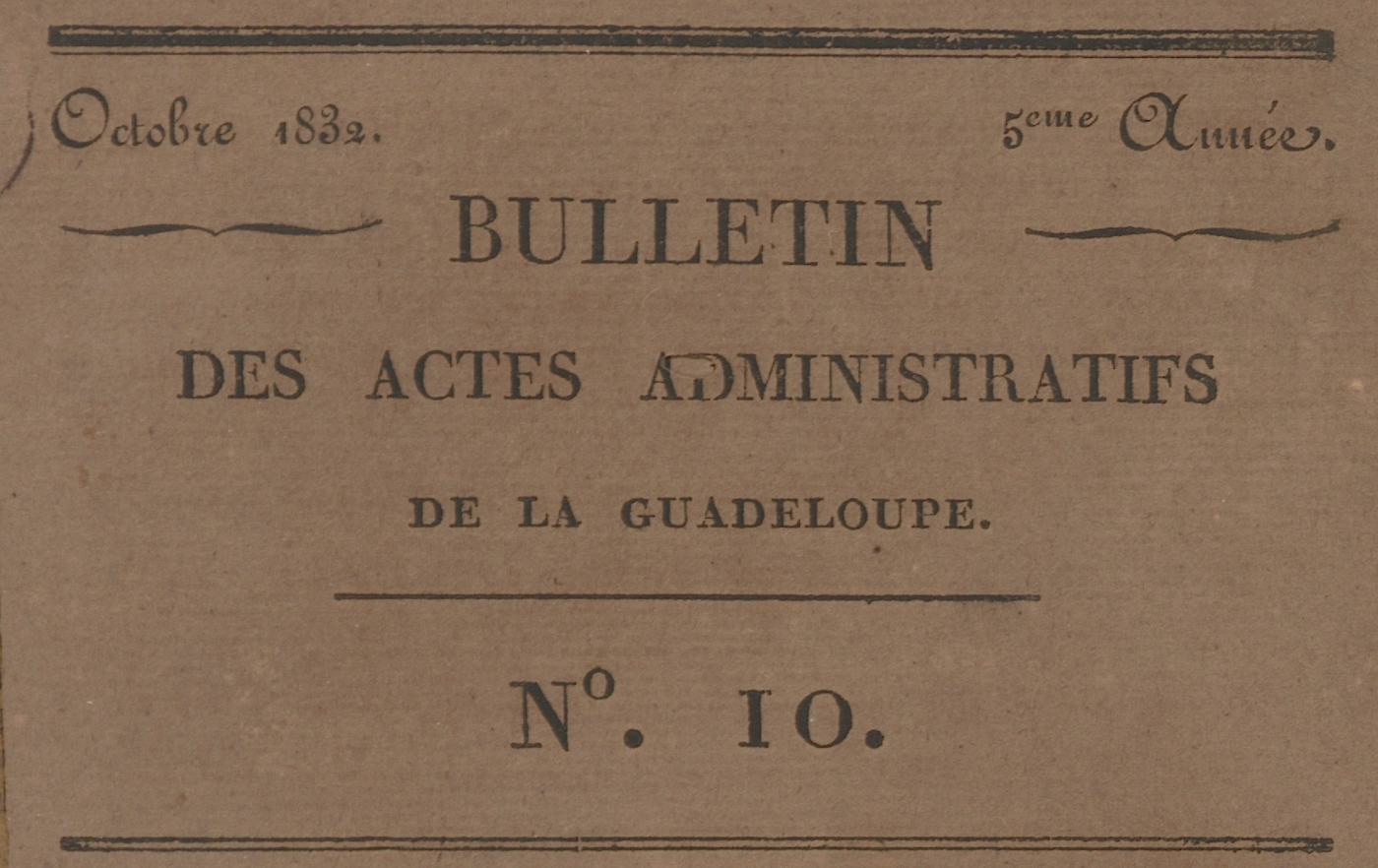 Bulletin des actes administratifs de la Guadeloupe. 1832-1834, cote AD971 3k1 /5 -3K1 /6