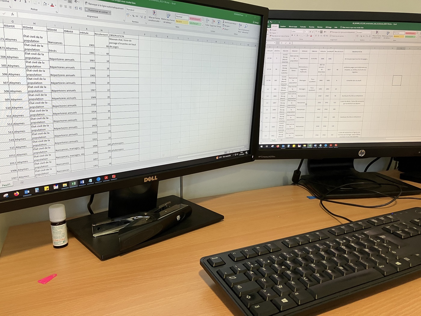 Préalable à toute opération de numérisation, ce travail de récolement vise d’abord à contrôler les inventaires et, le cas échéant, à les compléter ou les modifier. Cette opération vise aussi à comptabiliser le nombre de pages de chaque registre et à contrôler l’état de conservation matériel des documents, contrôle qui déterminera son caractère numérisable ou non.