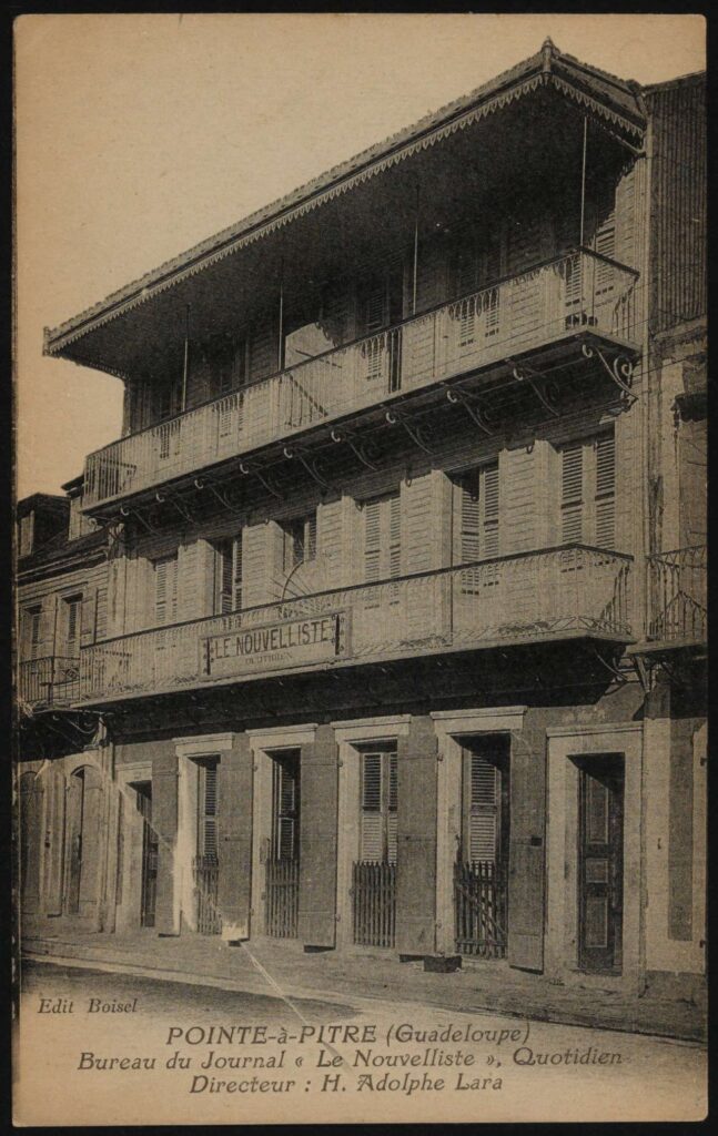 Créé en 1902 à Pointe-à-Pitre par Adolphe-Hildevert Lara, ce quotidien va accompagner l’évolution institutionnelle, politique et sociale de la Guadeloupe pendant plus de 50 ans. Dans les colonnes du « Nouvelliste », on trouve des informations locales et internationales, mais aussi des feuilletons littéraires, des annonces légales, des publicités. La politique locale tient toute sa place et « Le Nouvelliste » est un journal engagé à gauche, parfois très virulent à l’encontre du gouverneur qui représente la métropole.