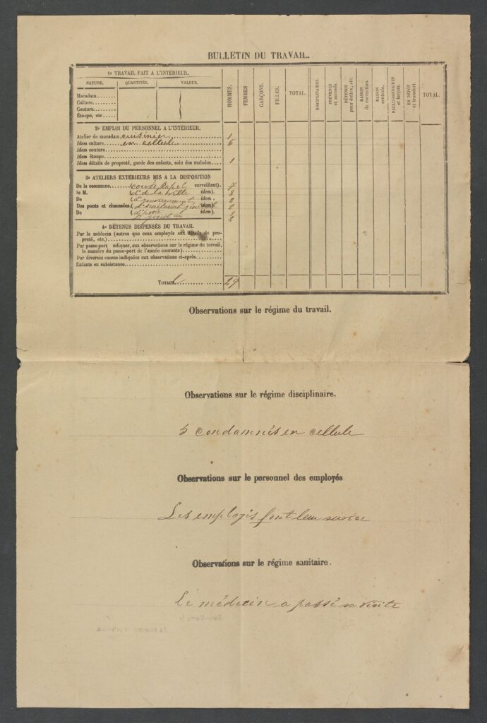 Les Archives départementales conservent néanmoins dans le fonds dit de « l’incendie de 1955 » des rapports journaliers de décembre 1909 qui donnent une idée du fonctionnement des institutions carcérales au début du XXe siècle.