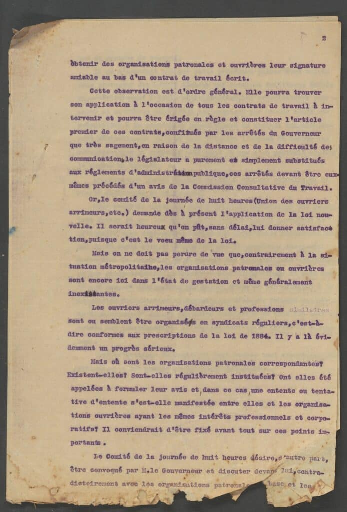 Malgré ce travail mené par les différents syndicats en commissions, la mise en œuvre de cette loi créé des tensions entre ouvriers et patrons, comme le montre le sous-dossier relatif à la grève qui débute le 28 juin 1920 dans l’usine Darboussier de Pointe-à-Pître.