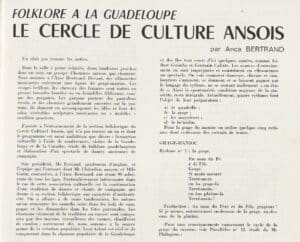 « Parallèles », « Le Cercle de culture ansois à Anse-Bertrand », Anca Bertrand, n°14, 1966, pages 19-21. Arch. dép. Guadeloupe, PA 9.