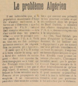 Le paysage médiatique des années 1960 n’est cependant pas le même qu’aujourd’hui. Cette liste élaborée par les Archives départementales vous donnera quelques idées de titres de l’époque pouvant traiter de la Guerre d’Algérie. Il est intéressant de noter que le sujet n’est pas seulement abordé dans les quotidiens ou hebdomadaires généralistes.