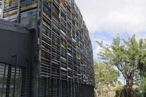 Même agrandis et densifiés, les espaces dévolus aux archives départementales demeurent insuffisants pour absorber l’accroissement des archives publiques produites par les services administratifs. Face à cet engorgement, la solution la mieux adaptée demeure la construction d’un nouvel équipement mais elle va mettre plusieurs années à s’imposer. Outre la mobilisation des crédits et la disponibilité d’un terrain, la question se pose également du maintien des Archives à Basse-Terre ou de leur transfert à Pointe-à-Pitre. Basse-Terre est certes le chef-lieu du département et le siège de la préfecture mais le dynamisme économique et culturel de sa rivale, ajouté aux risques induits par la proximité du volcan de la Soufrière, paraissent des arguments de poids en faveur d’une transplantation. Le danger se matérialise en août 1976 quand un regain d’activité du volcan provoque l’évacuation du sud de la Basse-Terre. Les Archives départementales et leurs collections sont hébergées plusieurs mois sur le campus universitaire de Pointe-à-Pitre, une partie des archives est même transférée à la Martinique et ne revient pas avant 1978.